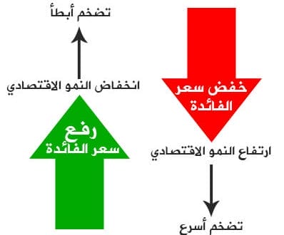 لذلك فأن البنوك المركزية ترفع سعر الفائدة الاساسية عندما يرتفع مستوى التضخم في الاسواق (زيادة