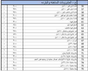 تأكد بأنك تأخذها بتسعيره القوائم المتفق عليها من وزاره الصناعة و التجارة و التموين حسب الاتفاق مع ضريبه الدخل و المبيعات و نقابه اصحاب المطاعم. وتأكد دائما من الكميه حسب ما هوه مبين ادناه .